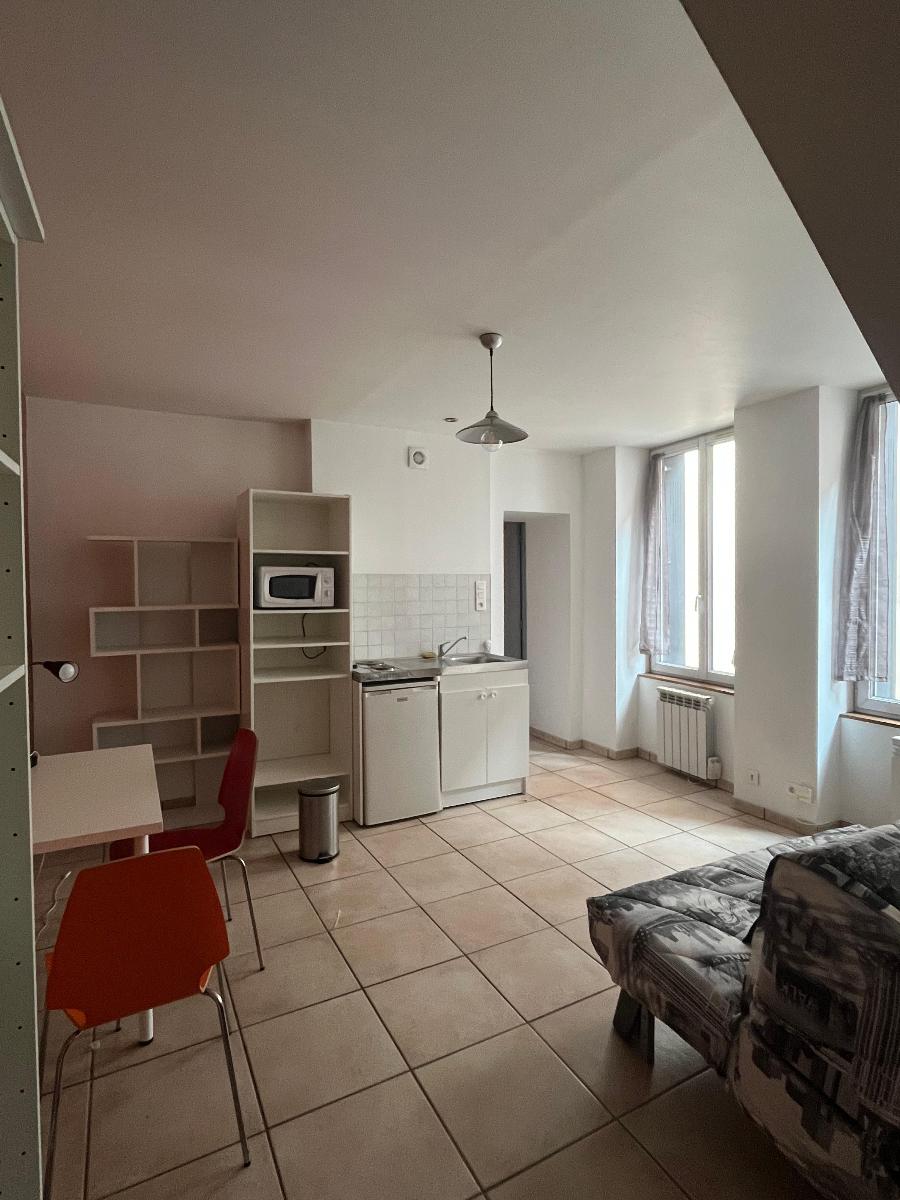 Idéal étudiant - Studio Bas Fauriel- Rue Pierre TERMIER- appartement meublé ( hors vaisselle et couette) - cuisine équipée ( réfrigérateur, plaque de cuisson et micro-onde)- canapé lit- salle de bains avec douche- chauffage individuel électrique- -loyer mensuel 370 Euros + 10 Euros de charges- Frais d'agence 260 Euros TTC- Cabinet Georges SABOT- 04.77.38.20.20.