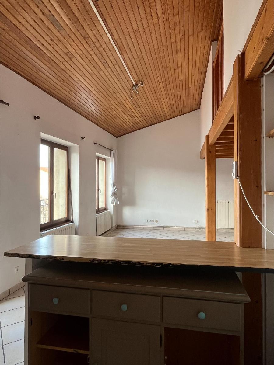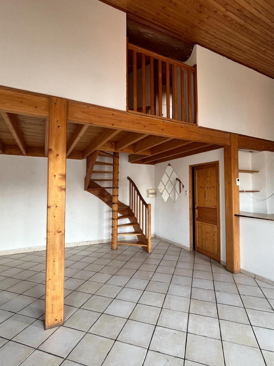 T3 secteur tréfilerie- 76 Rue Antoine DURAFOUR- en duplex - composé d'un hall d'entrée, une cuisine ouverte sur séjour avec éléments - WC séparés- salle de bains avec baignoire et double vasque- 2 chambres mansardées à l'étage- petit balcon à l'arrière - chauffage central individuel au gaz- Loyer mensuel 505 Euros + 40 Euros de charges- frais d'agence 305 Euros TTC - Cabinet G SABOT 04.77.38.20.20.